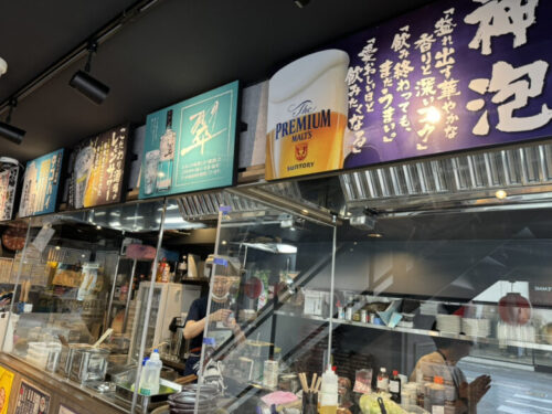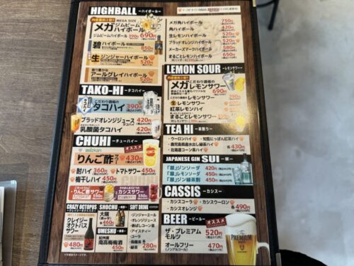 下通店はがっつり系フードと多様なアルコールが展開されていますが、熊本三年坂店は気軽にハイボールとたこ焼が楽しめるお店です。