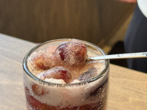 冷凍ぶどうがシャーベットみたいになってるんですよ。これ美味しすぎて何杯もいっちゃうヤツです。