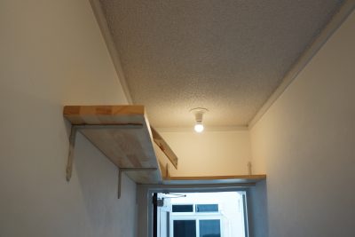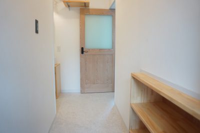 玄関扉の段差を活用し、収納棚を設置