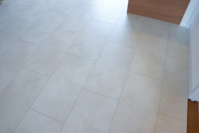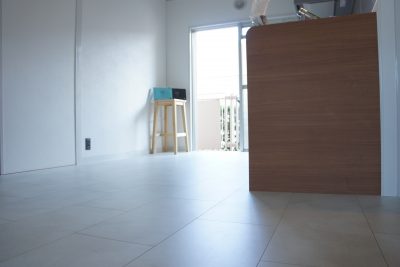 既存の茶色のフローリングも撤去し白いフローリングに。白と言ってもカントリー調ではなくランダムにブラックストーンのような柄があしらわれているので、甘すぎません。