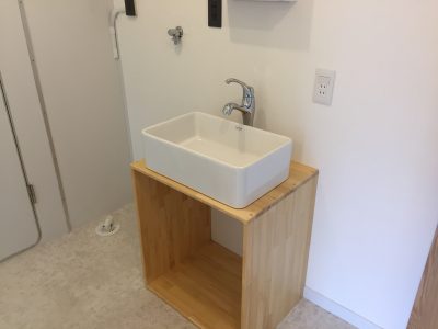 既存の洗面台は撤去しシンプルで使いやすい洗面台に