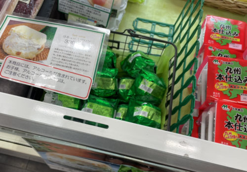 テレビのバラエティ番組で紹介されて人気爆発中なのがSWISSの「リキュールマロン」。マルキンの納豆と並んでいるのがちょっと不思議。