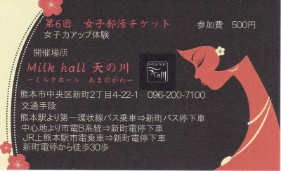 会場先になる「Milk hall 天の川」 096-200-7100にお問い合わせください。