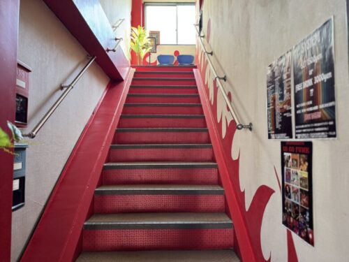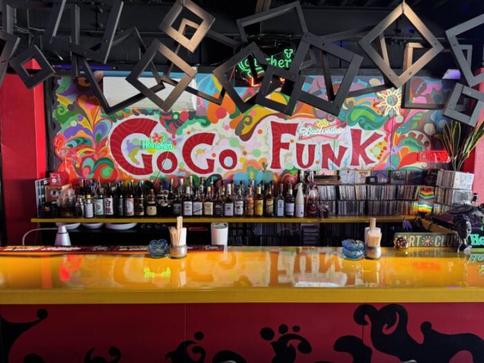こちらの黄色いビルの、赤い「GOGO FUNK」という看板が目印です。
