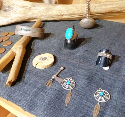 気に入ったパーツを買う、もしくは持ち込んで、革紐をつけてもらう常連さんもいます。