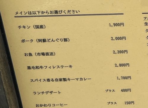 メインによってお値段は異なるようです。