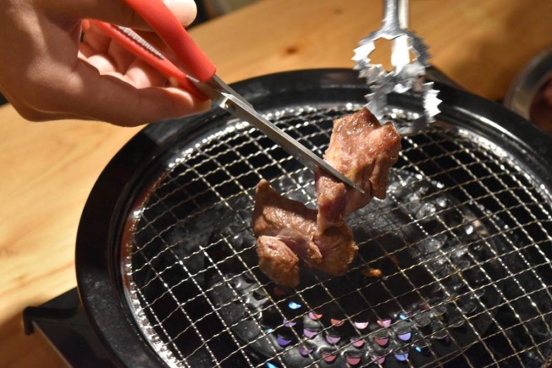 適度に火が通ってきたら、店員さんがひと口サイズにカットしに来てくれますよ。