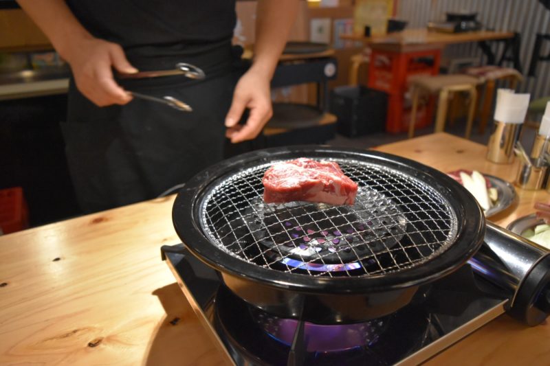 悟大では、脂や雑味を落とすために、一般的なジンギスカン鍋ではなく網焼きを採用しています。余分な脂が落ちるので、肉の旨みをギュギュっと凝縮するそうです。