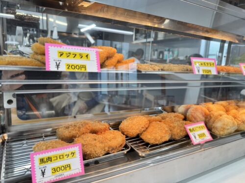 カウンターにコロッケやアジフライなどが売ってあるので、おかずを購入できオリジナル定食を作れます。