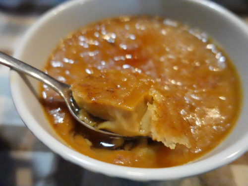 表面にこんがりと固まったカラメルをスプーンのお腹でコンコンと叩くと、