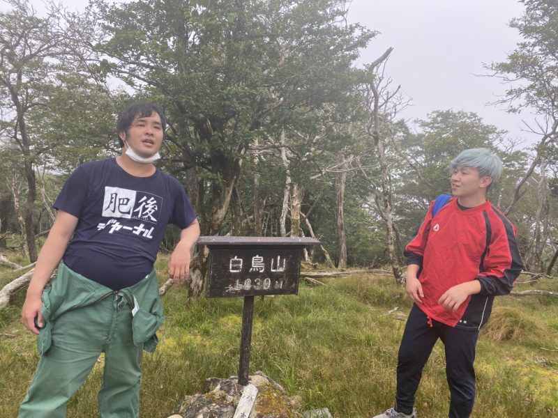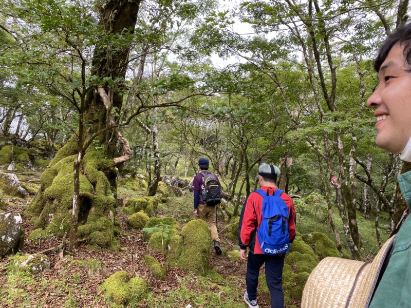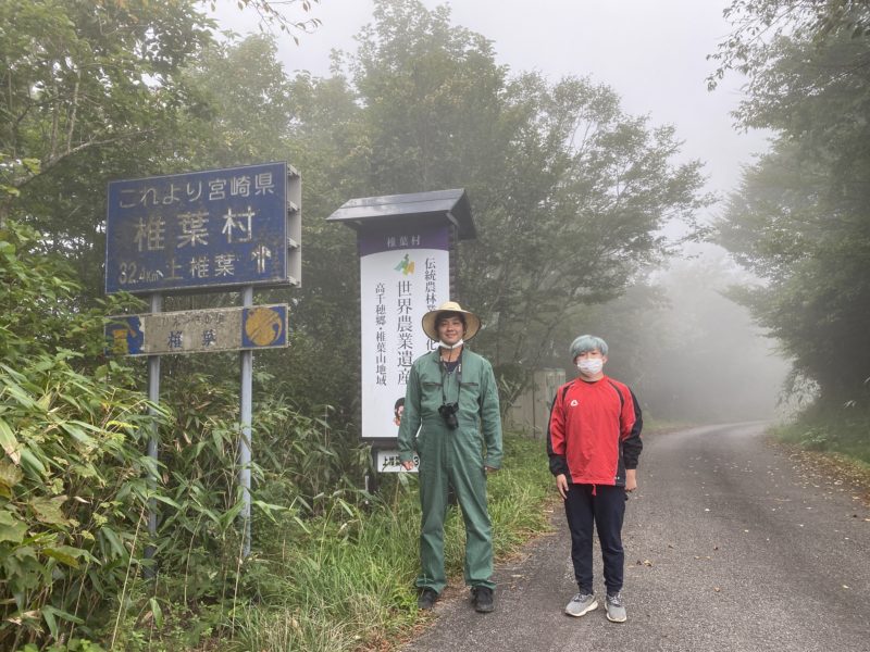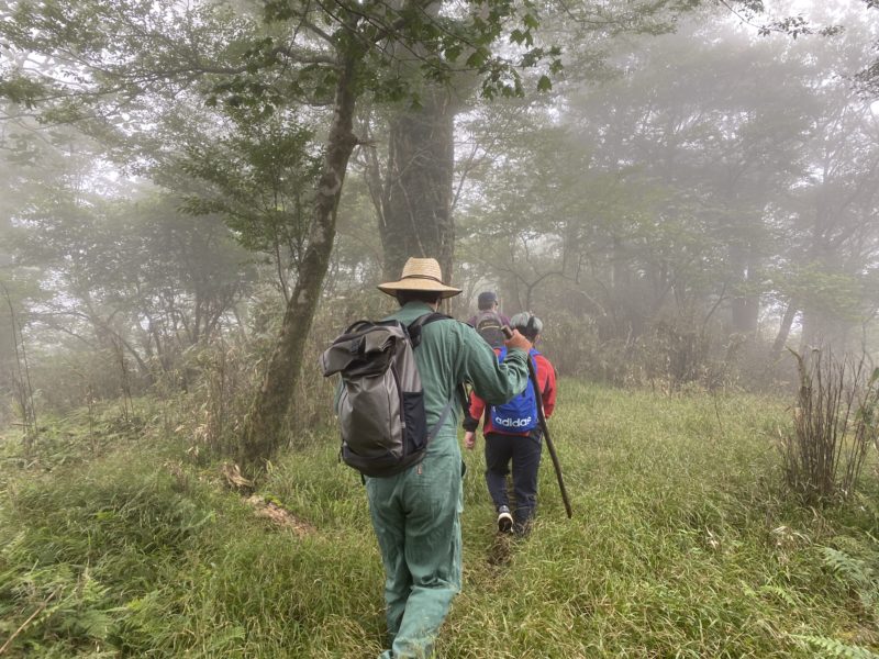 黒木さんの案内のもと、登っていきます。この日は霧が出ていましたが、天気がいいと椎葉村を一望できるそうです。