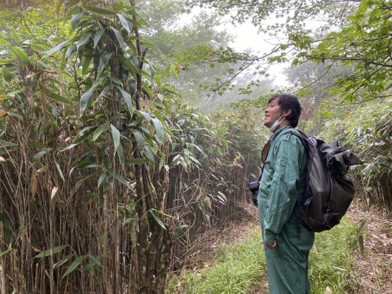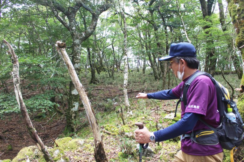 このあたりは元々、一面竹や笹が生い茂っていて、気軽に登山に来られる場所じゃなかったんです。近年、温暖化で冬を越せる鹿が増えたことで、かなりの範囲で食べ尽くしちゃったんですよね。そのおかげで登山がしやすくなったんです。