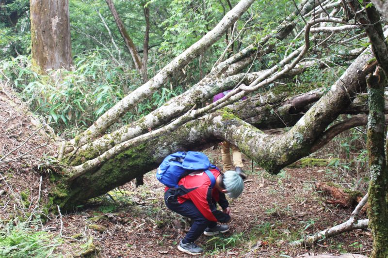 ちなみにすぐ隣は宮崎県椎葉村。これから登る登山道も県境に沿って進んでいくそうです。もうね空気感が違うというか、そもそも温度が違うというか。ひんやりしてました。