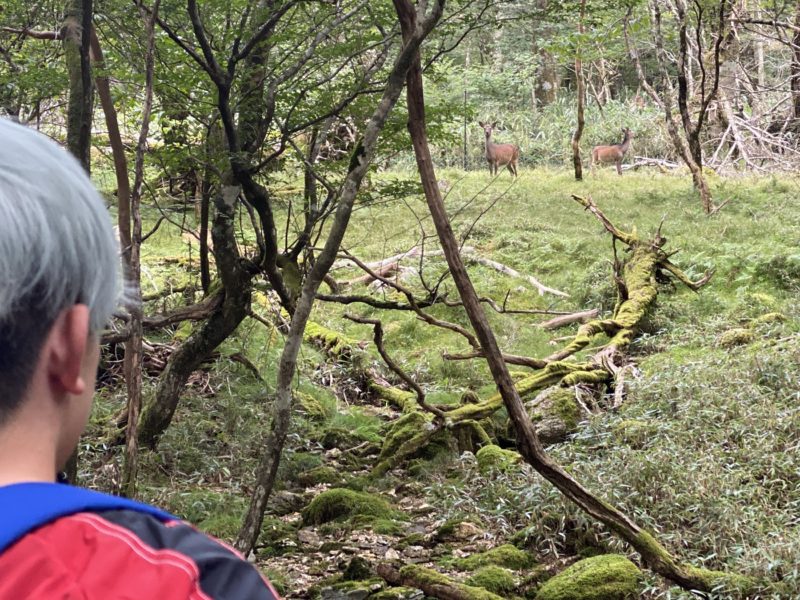 鹿と至近距離でコンニチワしたり(普段は警戒心が強くてここまでは近寄ってこないそう)。