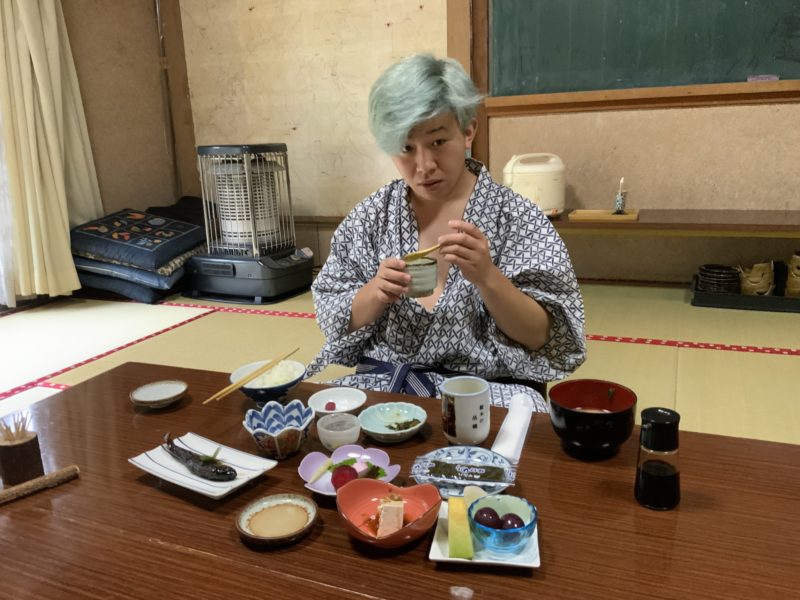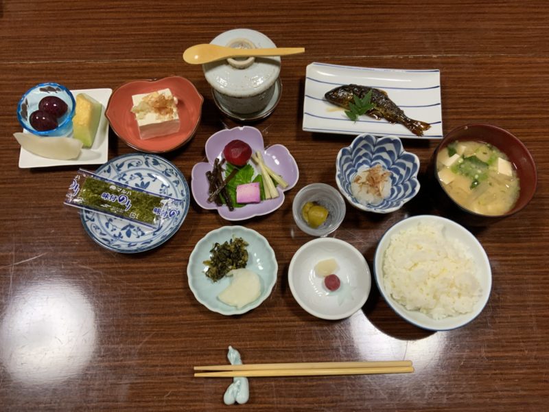 優しくてご飯が進むおかずばかり。ヤマメは甘露煮で。なんなら味噌汁にも入っていました。