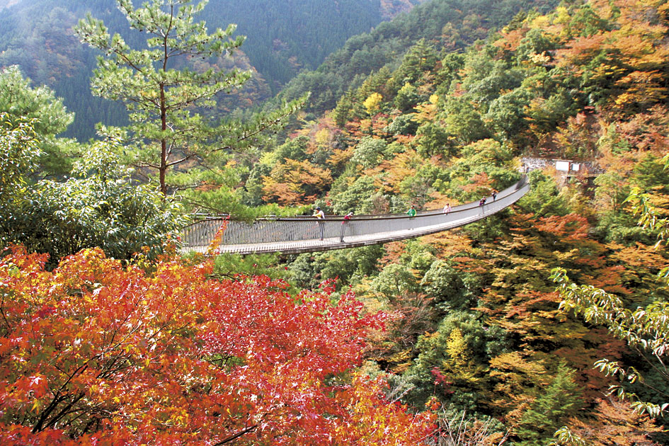 そのまま、梅の木轟公園の吊橋にやってきました。もう少しすると木々が朱に染まり、一面の紅葉が楽しめる名スポットです。