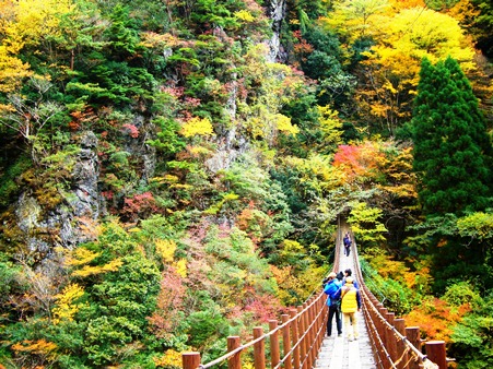 吊橋を渡って進むと、滝なども有り行楽シーズンにはたまらないスポットです。