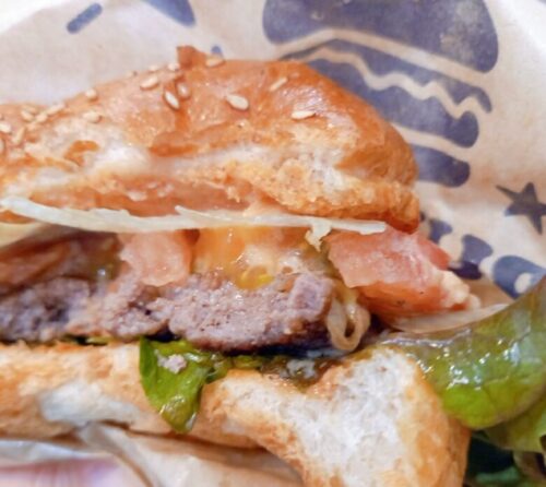一瞬「ベジタリアン向けバーガーだっけ?」と思いましたが、食べ進めるとちゃんとパティに行きつきます!