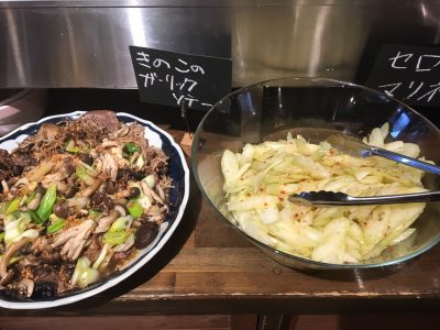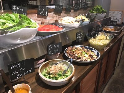 お店の中央に並ぶサラダやお惣菜も盛りだくさんで、お腹いっぱい食べられそうです。