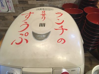 炊飯ジャーには日替わりスープ。この日はクリーミーなポタージュスープでした。