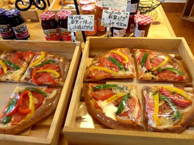 パンタイプのピザにパンにお野菜をたっぷり楽しめます。