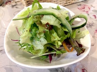 サラダも登場しています。新鮮なパリッとした野菜サラダがモリモリと盛られています。