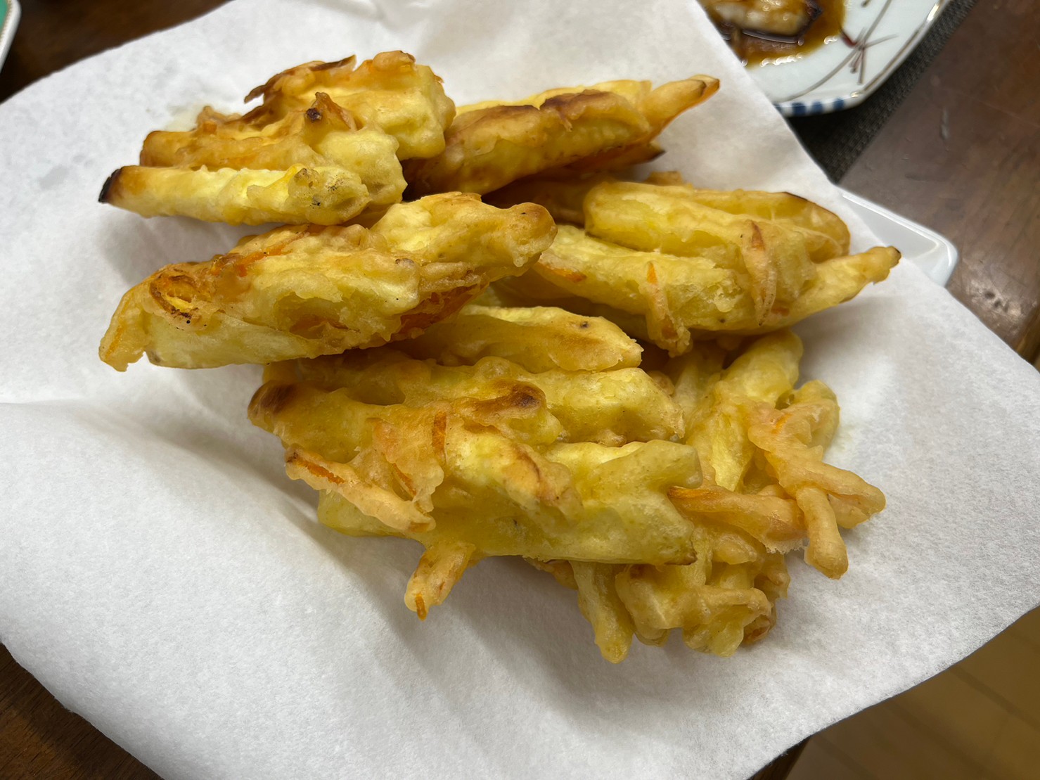 天草名物であるがねあげ(さつまいものかき揚げ)も出していただき、さらにサラダや鯛のお味噌汁もいただいてお腹パンパン!