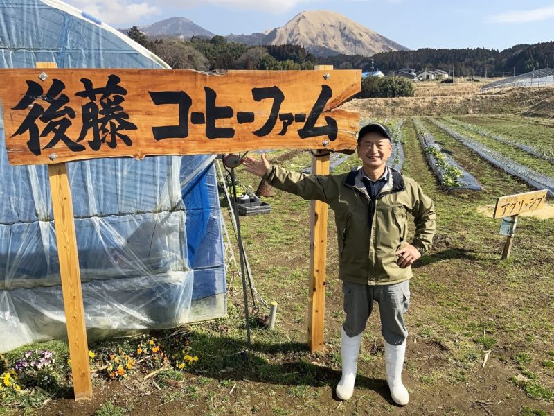 南阿蘇で移動中、長陽駅の近くで「後藤コーヒーファーム」という看板のついたビニールハウスを見つけました。