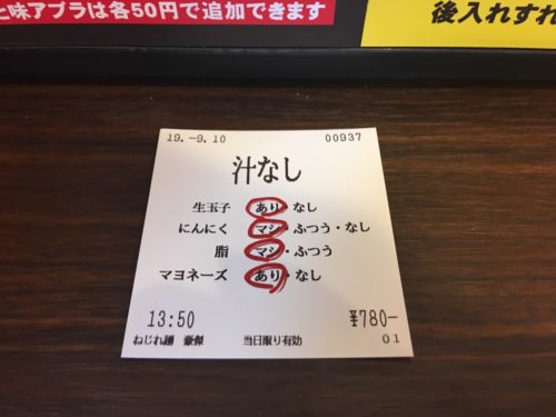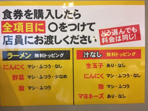 その後、購入した食券に、無料トッピングを記入します。