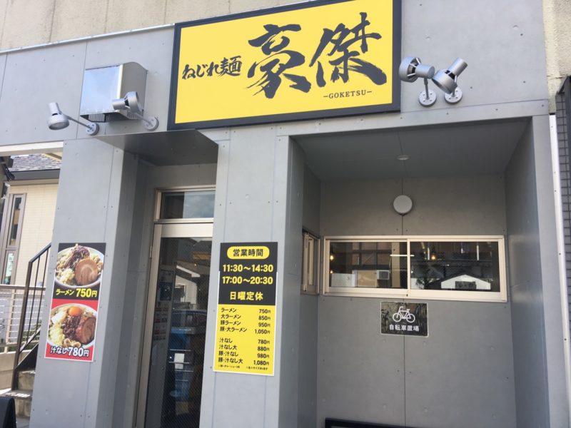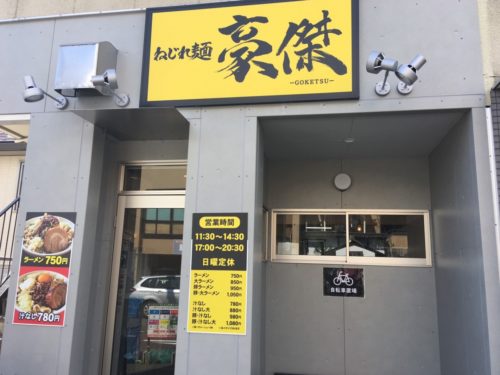こちらが「ねじれ麺 豪傑」。子飼橋と産業道路の間の道沿いの、「ひごのすけ」跡に今月初めオープンしました。
