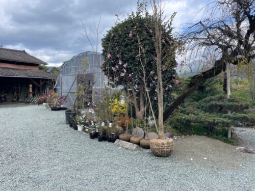 お庭にはなぜか、たくさんの植木や苗が販売されています。
