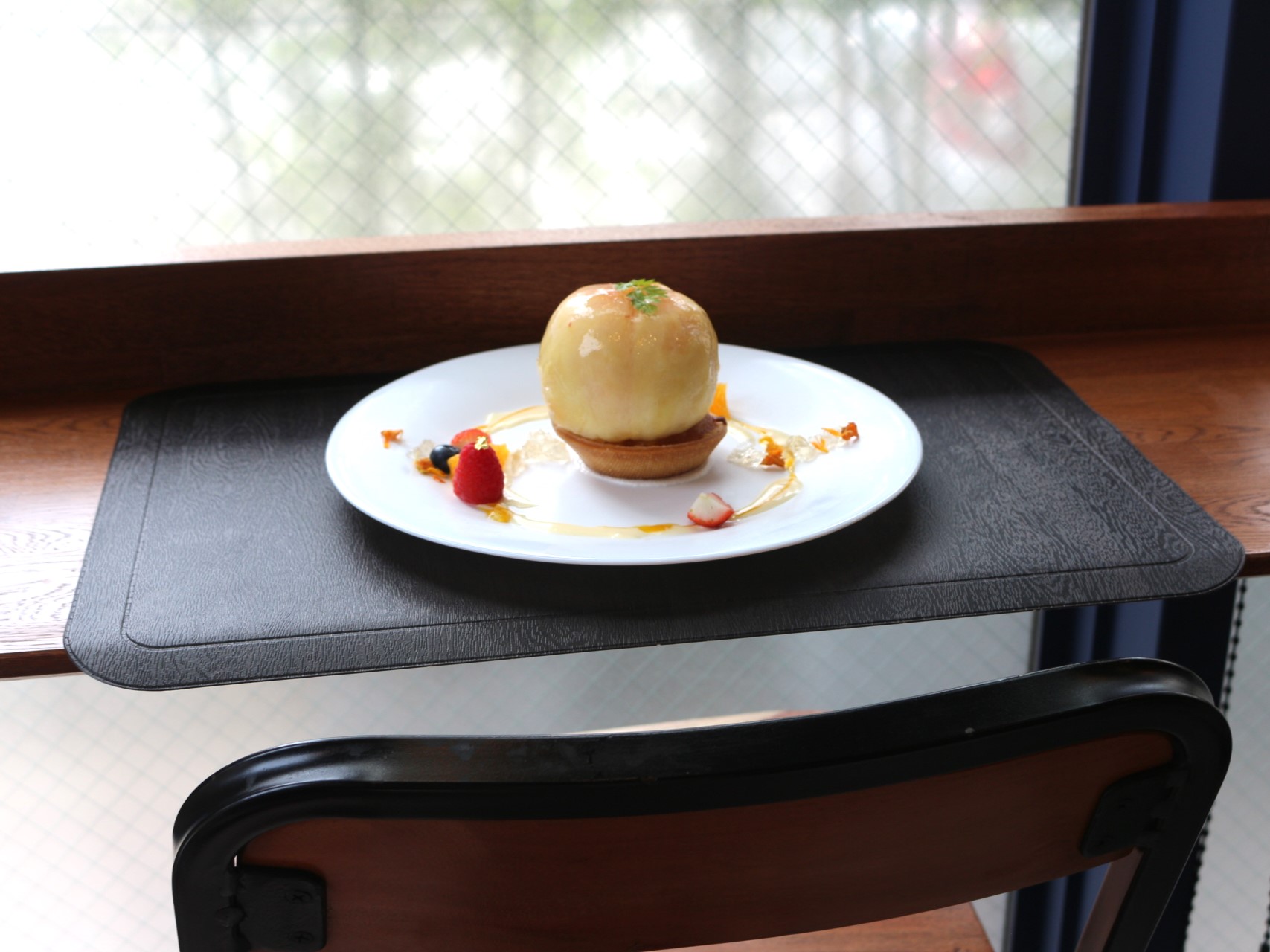今が旬の”まるごと白桃 ケーキ(ドリンク付き1500円/テイクアウト950円)”。あー夏が来たなって思います。「グラン菓樹 並木坂」では8月末頃までこの白桃のケーキが買えるんですって。