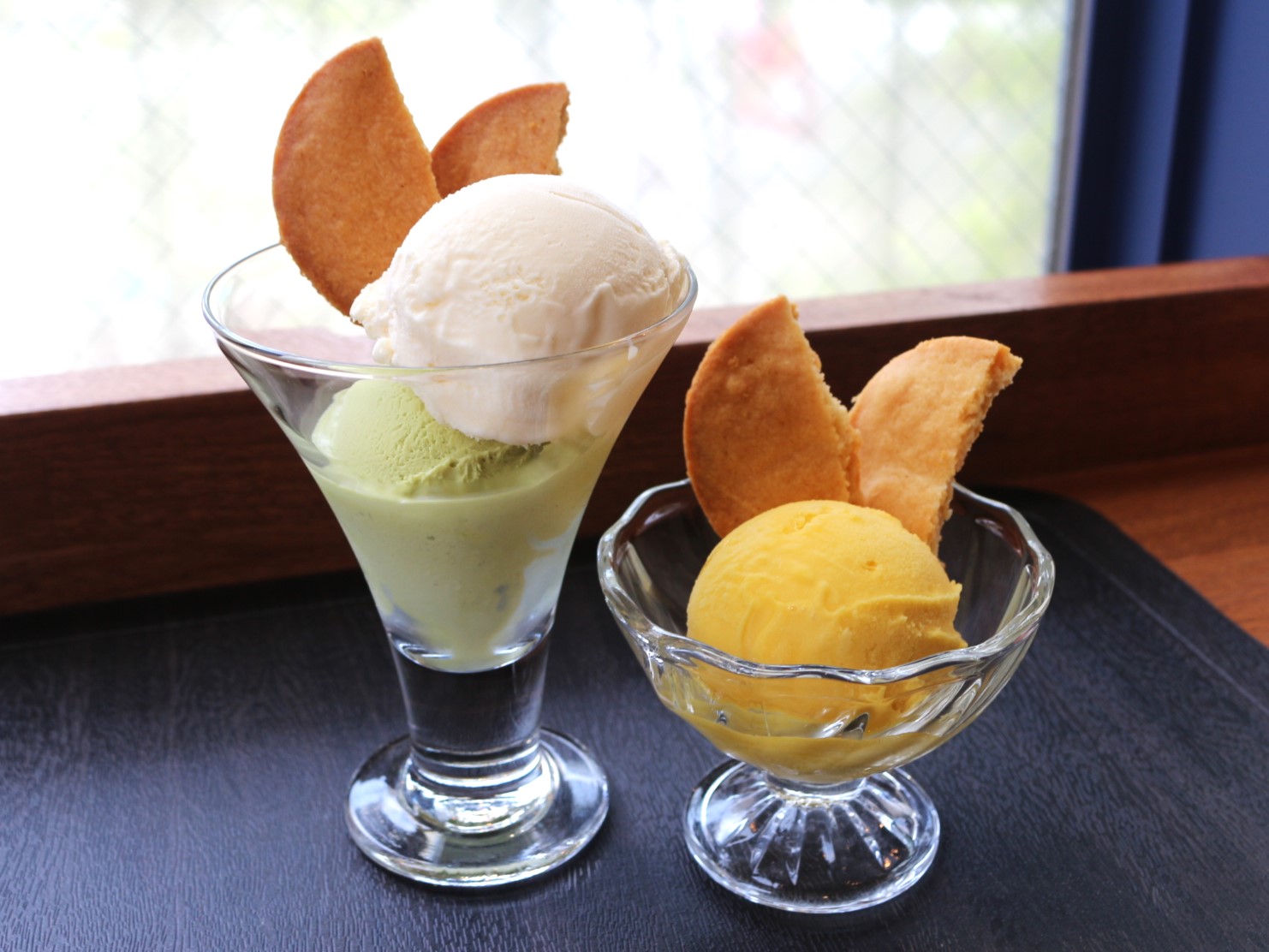 今回頂いたのはこちら!パルミジャーノレッジャーノ(チーズ)&ピスタチオ ダブル(700円)/マンゴーパッション シングル(500円)。