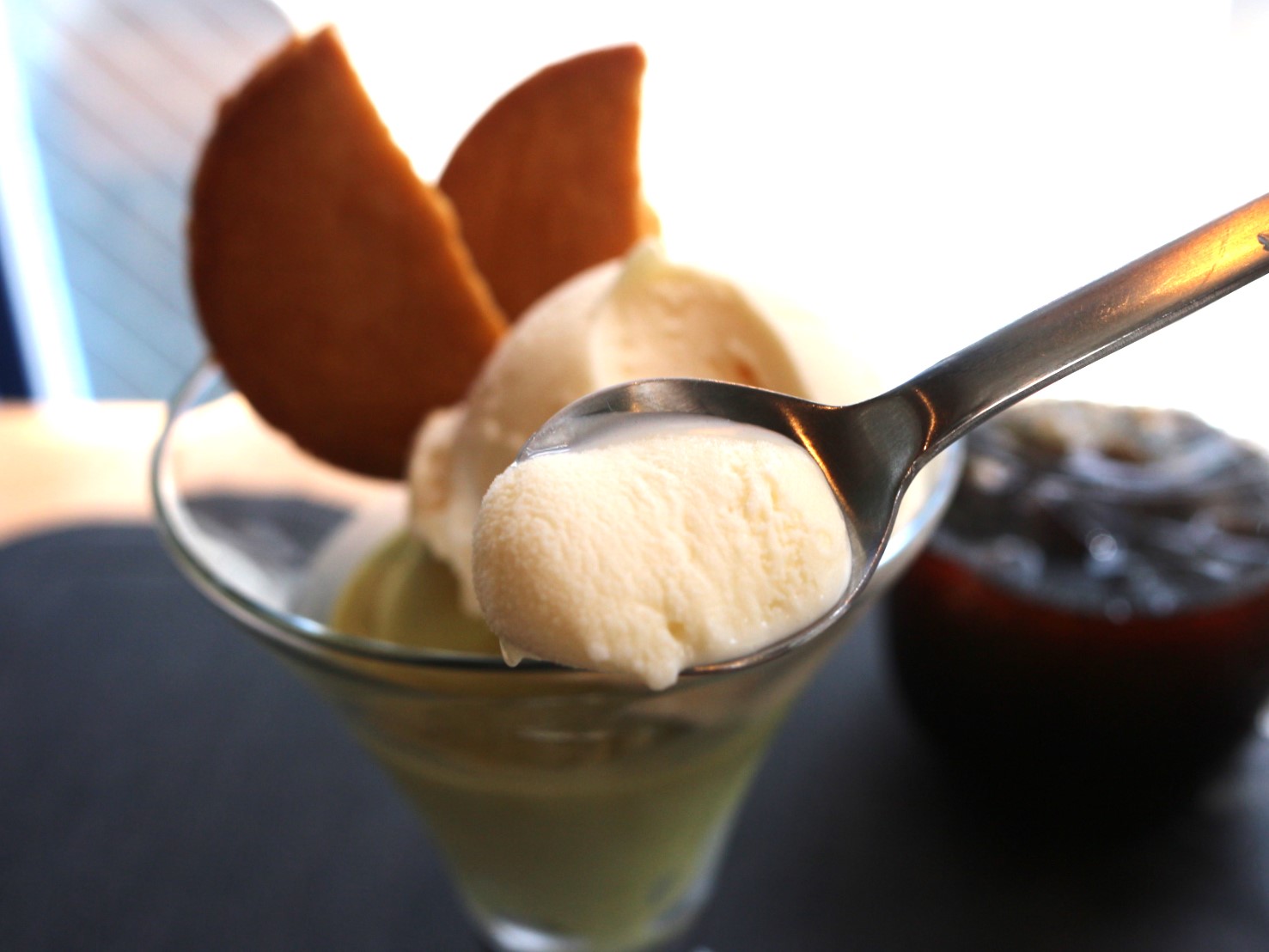 個人的なイメージなんですが、ジェラートって小さな氷が入っていて、シャリシャリしているものを思い浮かべます。ただこれは、まろやかで濃厚。上質なアイスクリームみたいです。