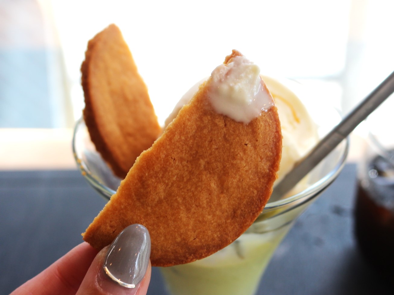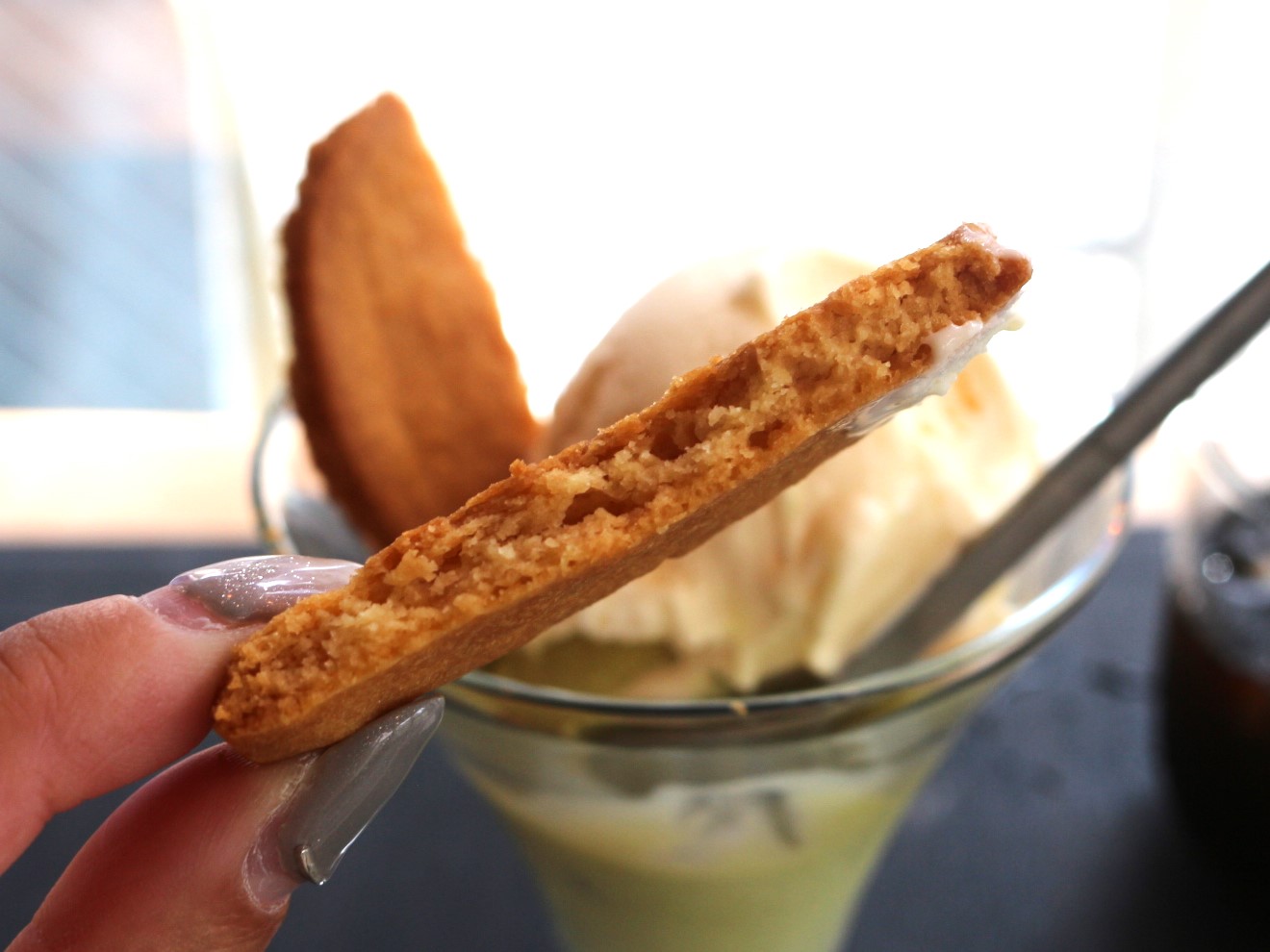 菓樹で人気の焼き菓子、クッキーでした!ザックザクで美味しいんですよ。1枚が大きいので、ジェラートが一気に贅沢な感じに。