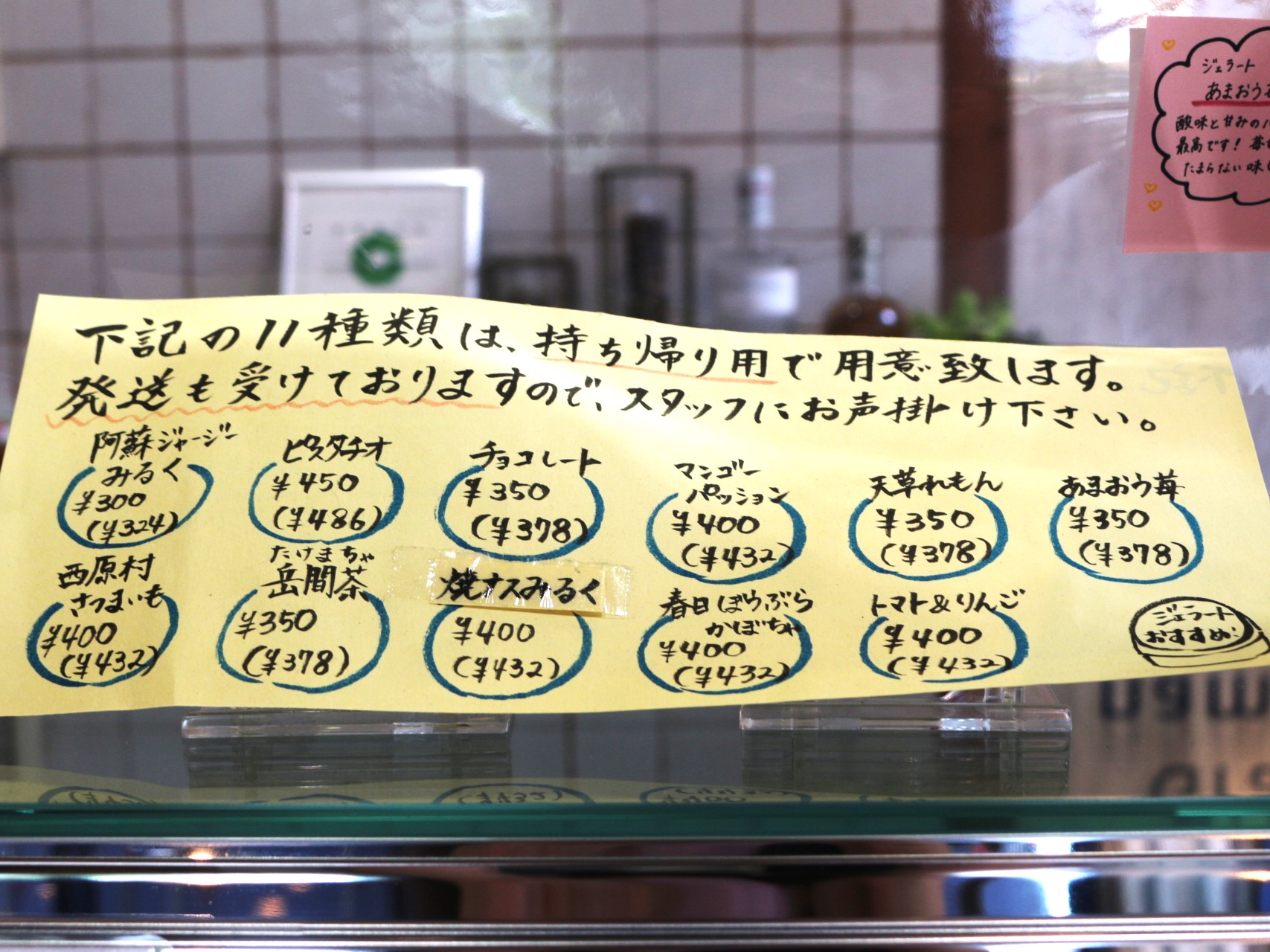 ジェラートはテイクアウトとイートインの両方が可能で、テイクアウトは全11種類。イートインだと、季節で種類が変わるのだそう。テイクアウト・イートインそれぞれの限定もあるというこだわりっぷり。