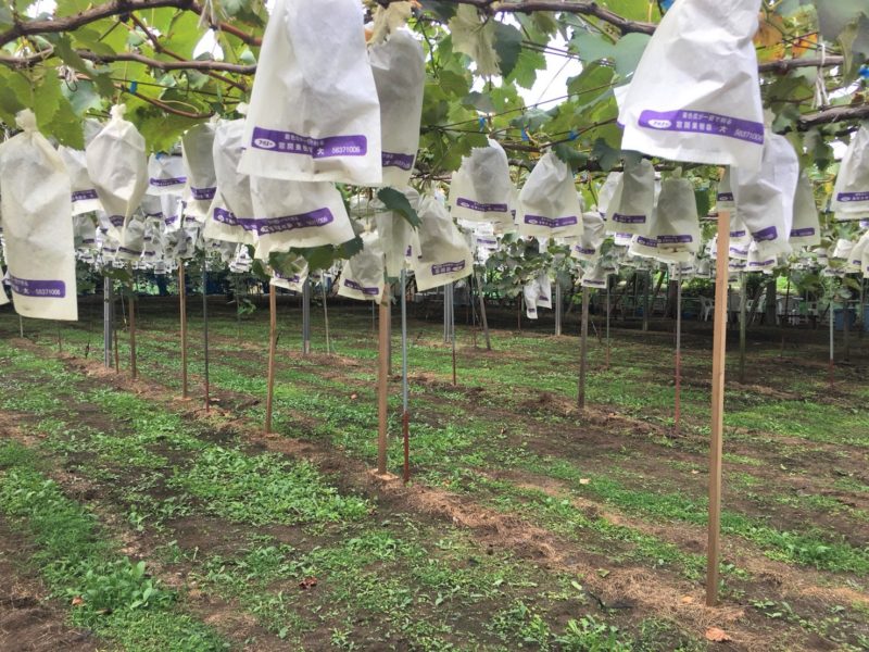 グレープガーデン益城の永尾豊さんにお話を伺ったところ、こちらでは化学肥料を一切使用せず、菜種油や牡蠣殻を使ってぶどうを生産されているそう。また、種なしではなく、種ありのぶどうにこだわって作られているとのこと。種ありの方がきれいな色になり、日持ちもし、ホルモン剤を使わなくて良いというメリットがあるそうです。
