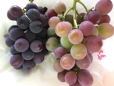 左の色が濃いものが巨峰、右の色が薄めのぶどうが竜宝になります。