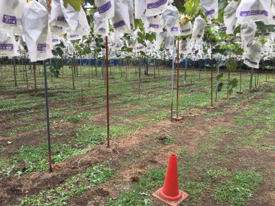 三角コーンが置いてある辺りのぶどうが食べ頃ということで、巨峰と竜宝を収穫。