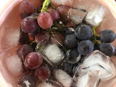 氷水で冷やしてパクり!甘いぶどうに感激!!