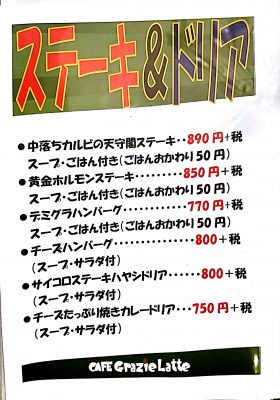 ステーキやドリア、エスプレッソにジェラートなどもあります。