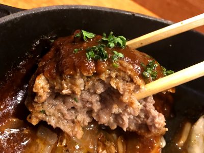 ハンバーグの肉汁と絡んだデミグラスソースも甘みとコクが絶妙なバランスで、ハンバーグとマッチしています!