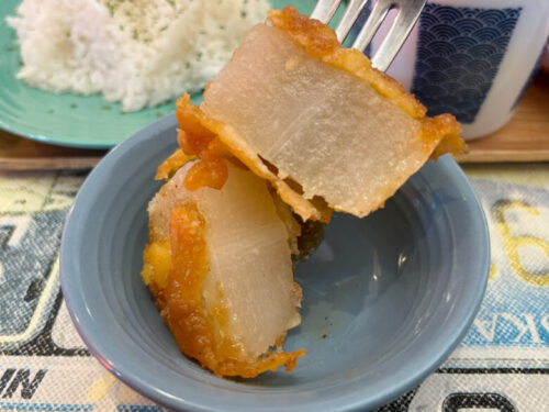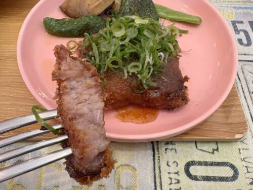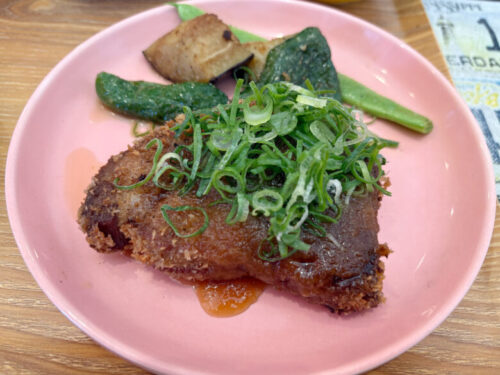 そしてメイン料理。しっかりした味がついたローストポークがカツに。