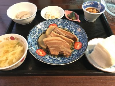 豚角煮はお箸を通すとほどけてしまうほどの驚異的な柔らかさ!あっさりとした味付けで仕上げられているので、暑い夏でも食が進んでしまうおいしさです。脂身もとろける食感で、それはもう絶品でした!