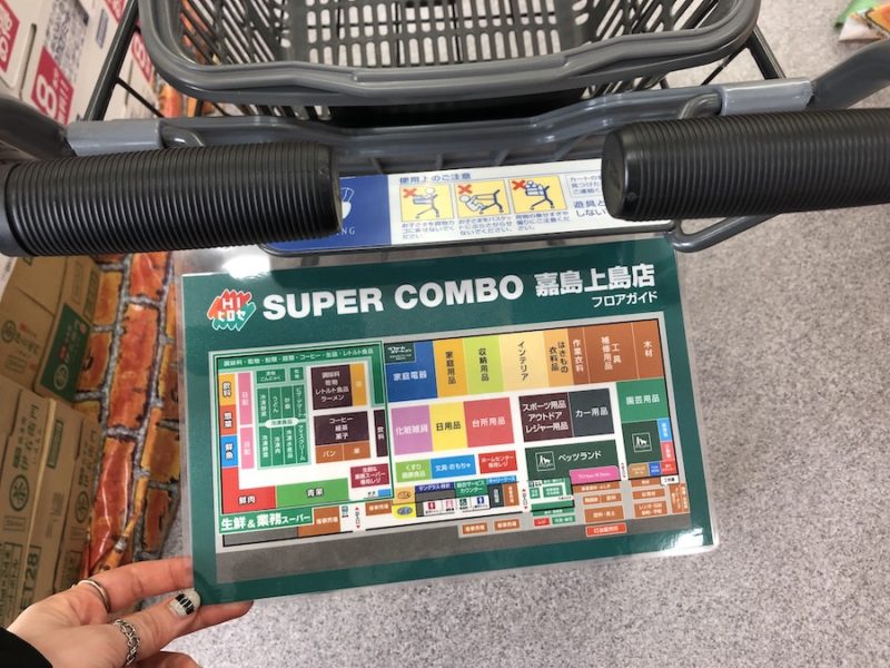 フロアガイドはこちら。隣接する「HIヒロセスーパーコンボ嘉島上島店」と合わせたフロアの1/3が、業務スーパーのようです。
