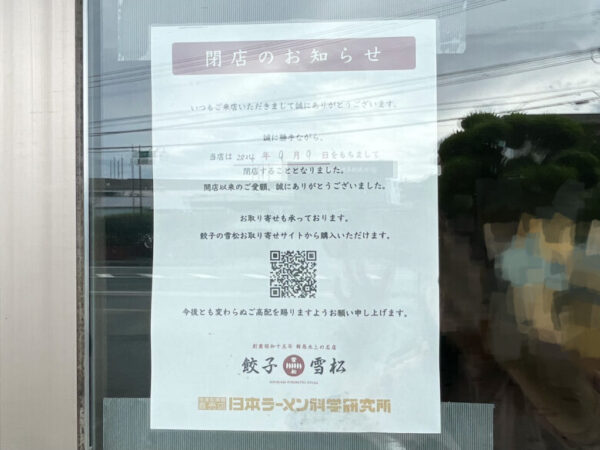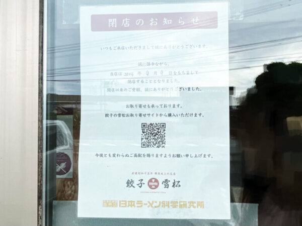 本当に餃子の雪松が全店舗閉店してた!