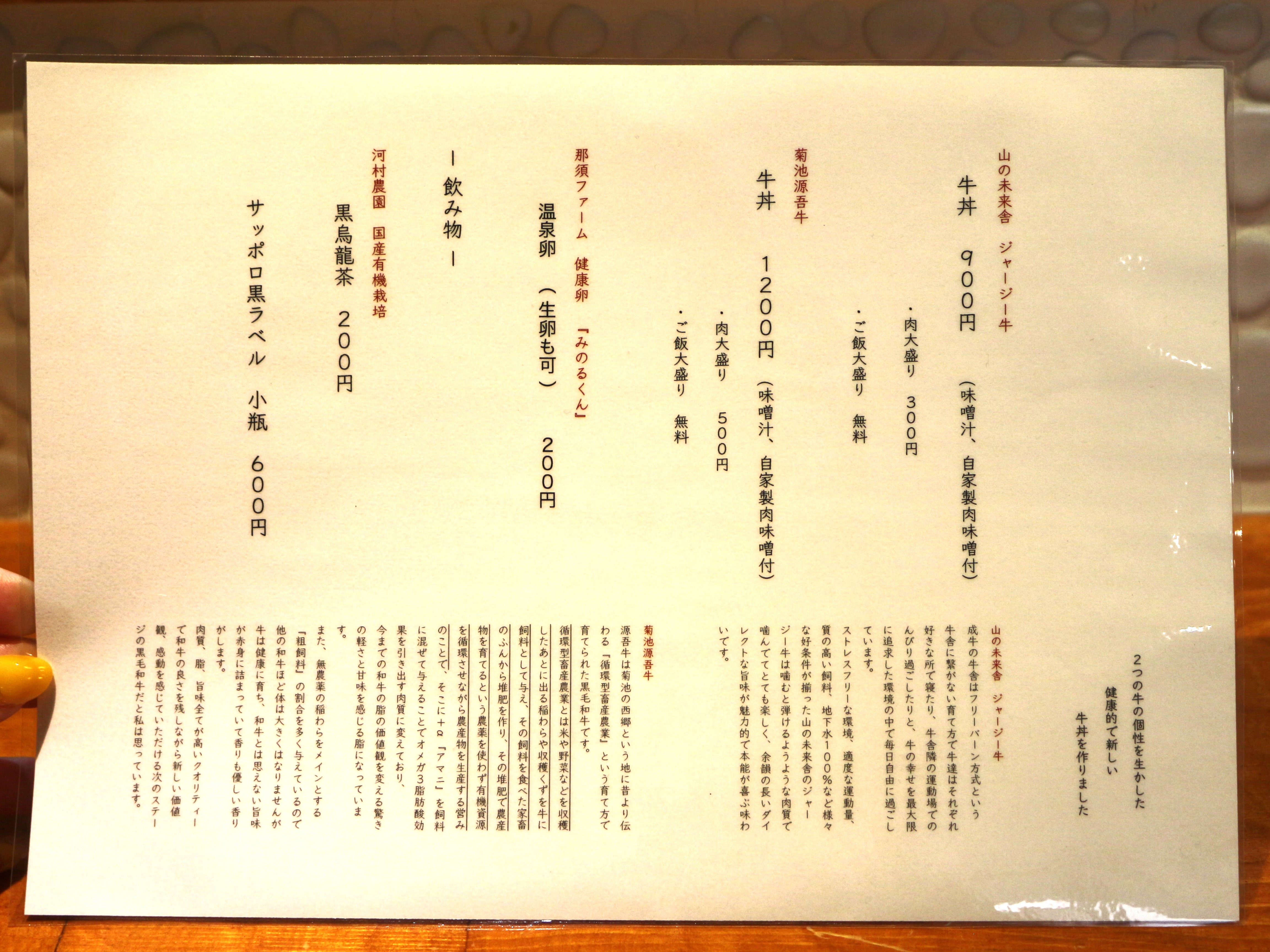 こだわりの牛肉は2種類。上益城郡山都町にある山口牧場のジャージー牛と菊池市七城町の黒毛和牛である菊池源吾牛を使われています。