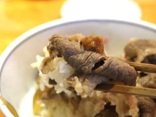 肉の味を楽しむ牛丼という感じ。赤身部分はあっさりしていて旨味をダイレクトに感じることができます。そして、赤身だけでなく、程よい割合で脂も入っているので全体的にメリハリのある牛丼に。