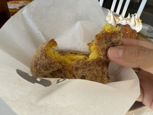 ああ!ふわふわ過ぎて、力を入れたらぷはーっとドーナツの魂が中から飛び出してきました。もちろん持ち帰って食べてもしっかりと美味しいですが、あつあつで、ふわっふわとぱふぱふが合わさった甘い生地に身も心も恋におちる事間違いなしです。
