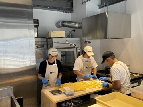 国産栗かぼちゃを皮まで丸ごと使用されており、加水率の高い生地により、モチモチ食感を味わえるようになっております。